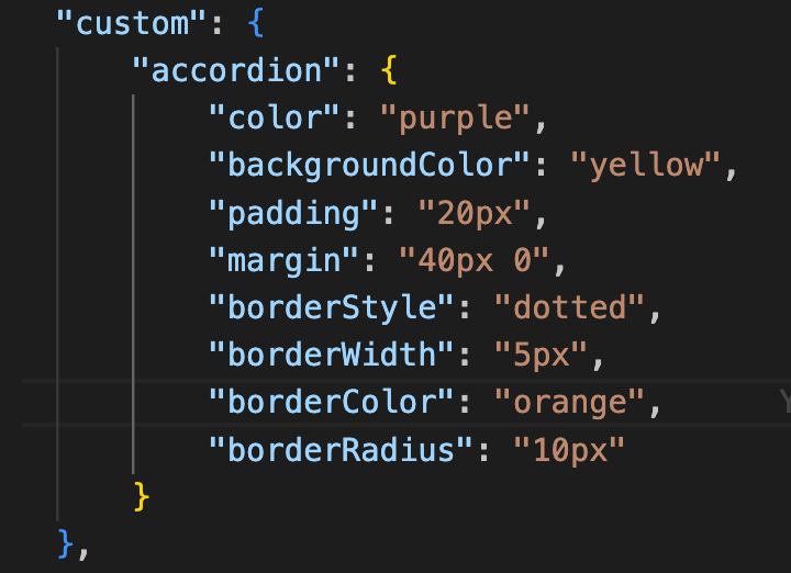 Using a custom accordion configuration in theme.json, WordPress might generate variables like: